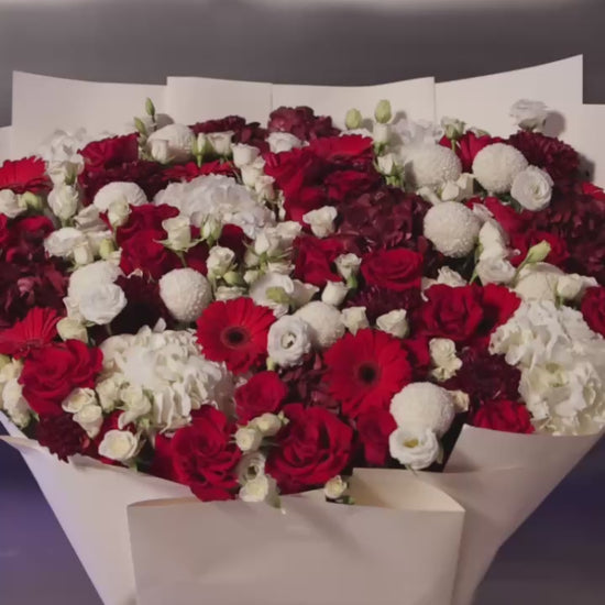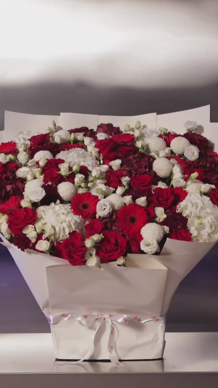 Make an unforgettable statement this Valentine's Day. The Royal Romance  is the crown jewel of our collection, featuring a breathtaking volume of premium red roses hand-tied to perfection. Designed for the moment when only the best will do, this arrangement exudes luxury, passion, and sophistication. Wrapped in our signature premium paper for a reveal that will sweep them off their feet.
