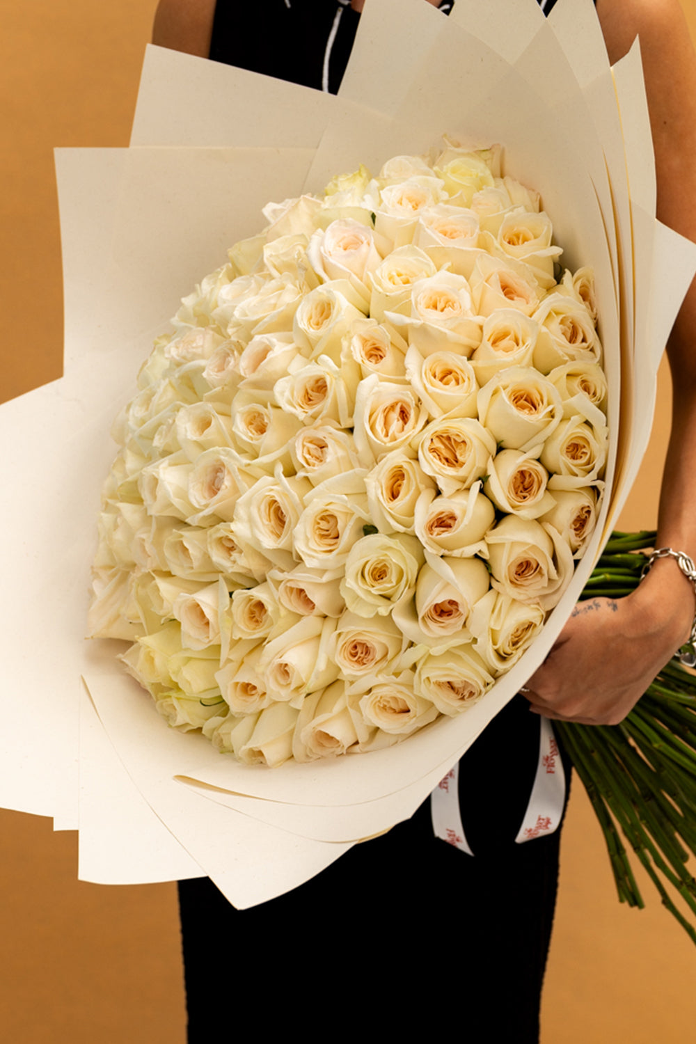 Pure, timeless, and effortlessly graceful, White Ohara Roses showcase the classic beauty of long-stemmed white roses. Each bloom is carefully selected for its perfect form, pristine color, and lasting freshness, creating a bouquet that radiates sophistication and serenity.
